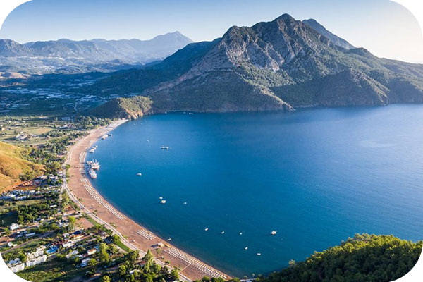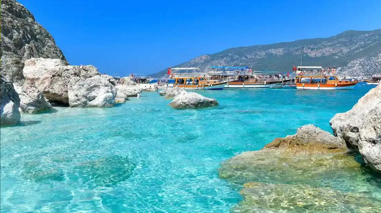 ١- شواطئ أدراسـان (Adrasan): نبدأ يومنا في خليج أدراسـان الساحر، حيث الجبال الخضراء تعانق البحر في مشهد مهيب. يتميز هذا الشاطئ بهدوئه العجيب ومياهه التي تشبه الزجاج في صفائها. إنه المكان المثالي للاسترخاء، المشي على الرمال الناعمة، واستنشاق هواء البحر النقي الذي “يرد الروح” ويغسل هموم الحياة.