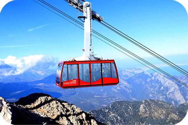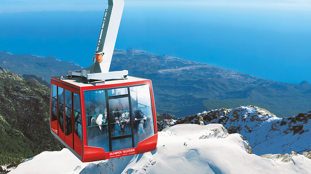 ١- تلفريك أوليمبوس (Olympos Teleferik): نبدأ المغامرة بصعود “تلفريك أوليمبوس” الشهير، الذي يأخذكم في رحلة بانورامية مذهلة إلى قمة جبل “تاهتالي” بارتفاع 2365 متراً فوق سطح البحر. المشهد من الأعلى “خرافي”؛ ستشاهدون الساحل الفيروزي والجبال الخضراء كلوحة فنية تحت أقدامكم. الهواء هنا نقي ومنعش جداً، وهي فرصة لا تعوض لالتقاط صور تذكارية وكأنكم “فوق الغيم”.