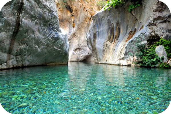 ٥- وادي جونيوك (Göynük Canyon): نختتم يومنا في واحدة من أجمل العجائب الطبيعية في تركيا. يتميز “وادي جونيوك” بمياهه التركوازية الصافية وصخوره الملونة التي شكلتها الطبيعة عبر آلاف السنين. المكان مثالي للمشي وسط الطبيعة، الاسترخاء، والتقاط صور تعكس جمال السياحة في أنطاليا. المناظر هنا ساحرة وتدعو للتأمل والهدوء.